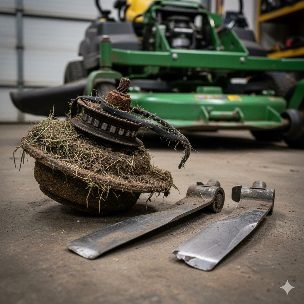 - Loud, Rattling Noise: This is typically the sound of failed spindle bearings. When the grease dries out or the bearing cage breaks, metal-on-metal friction creates a terrible grinding or loud rattling sound, especially when the blades are engaged.